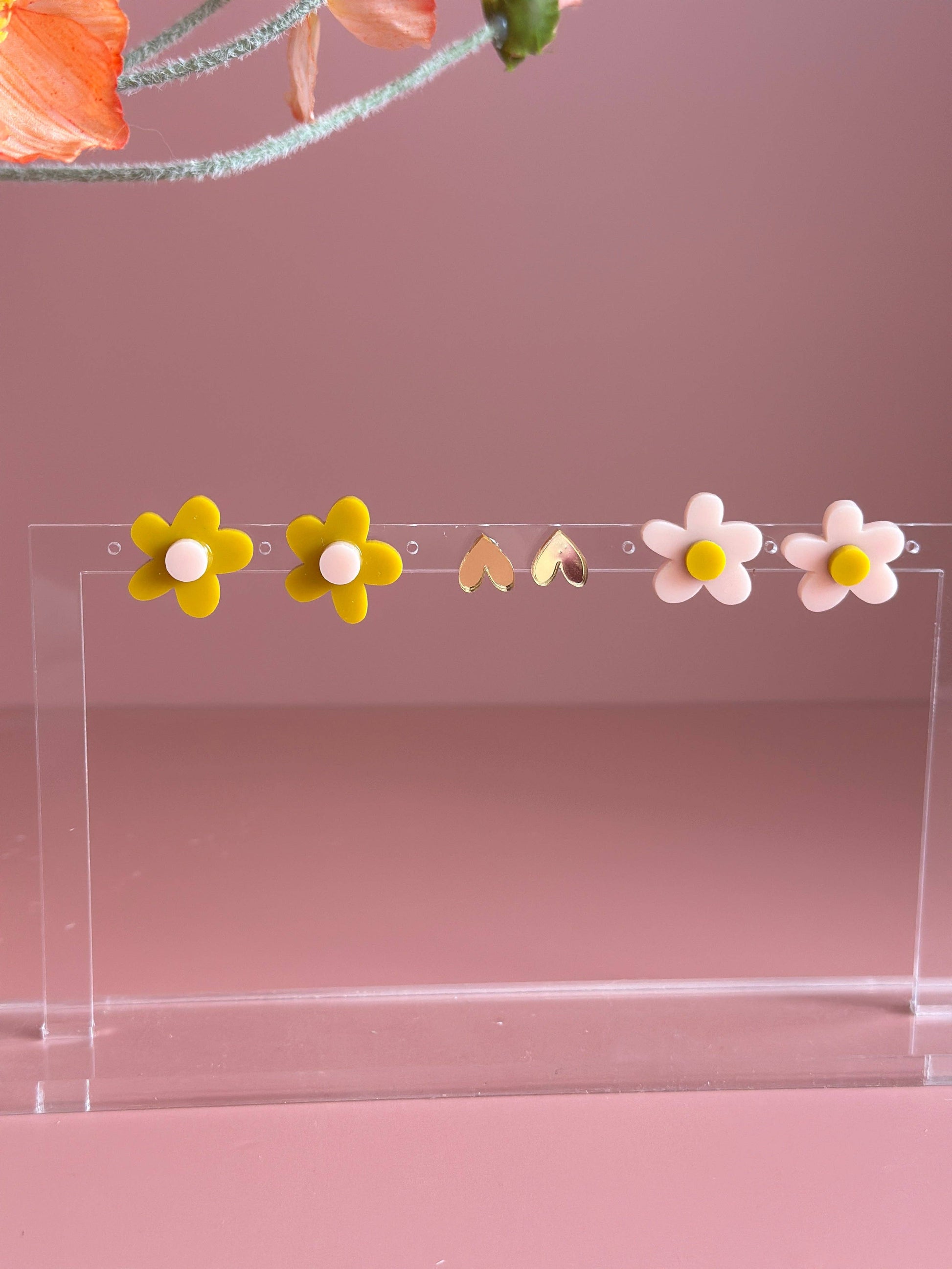 Super lightweight, co-ordinated trio of hypoallergenic studs, comprising of: