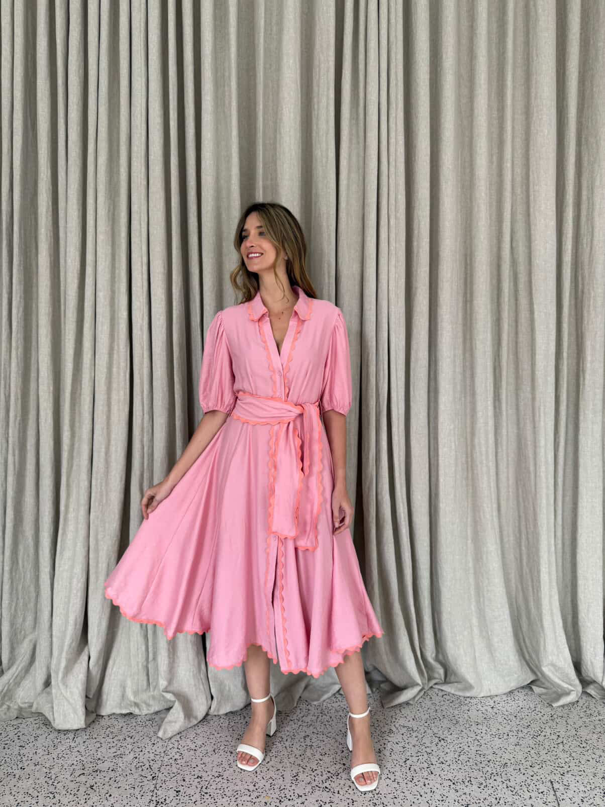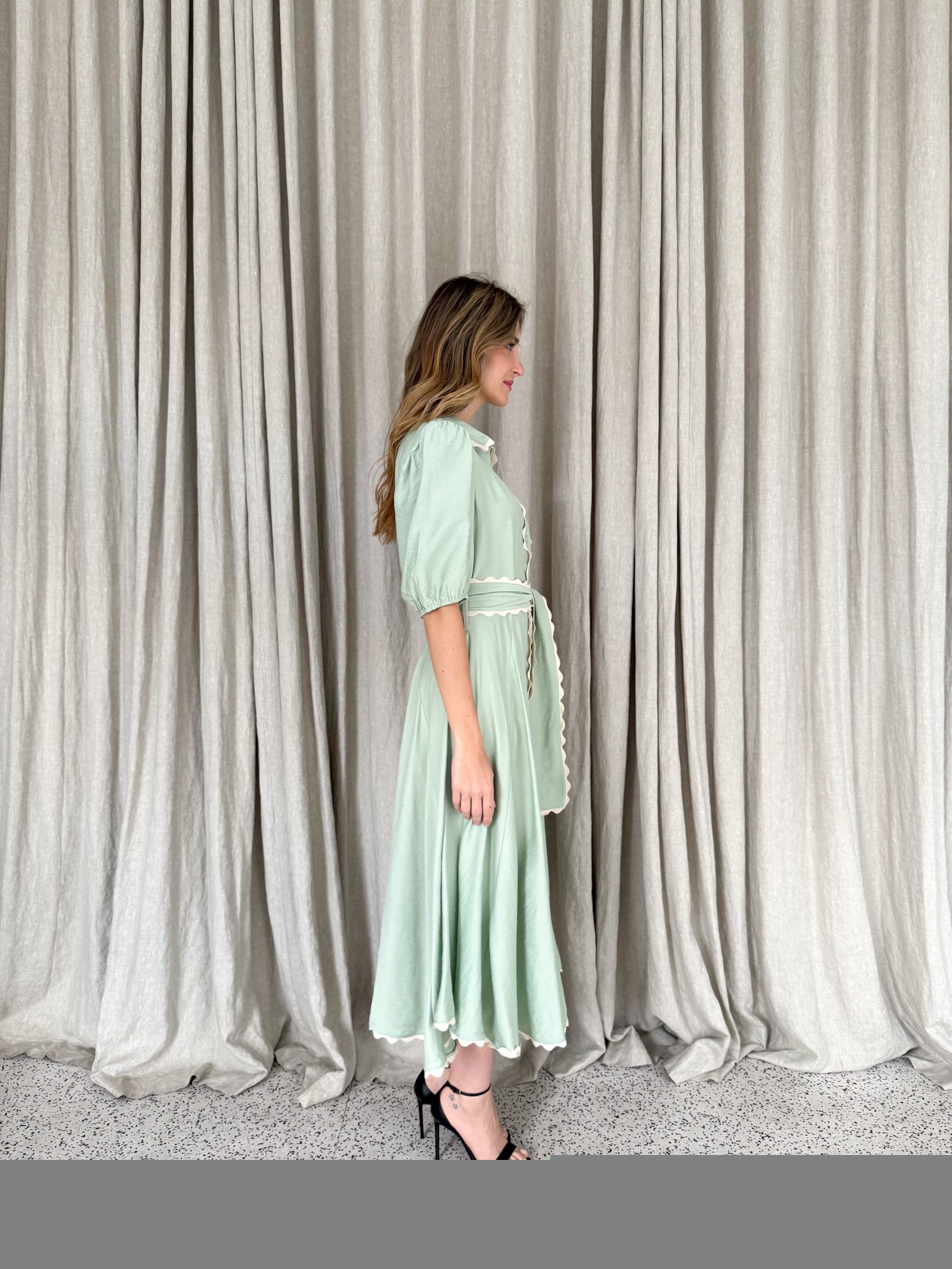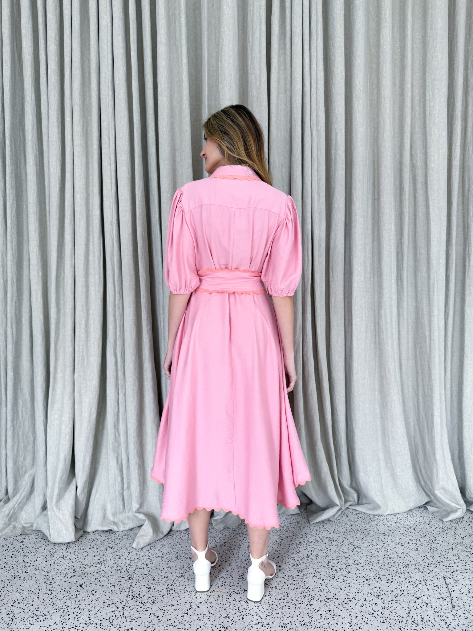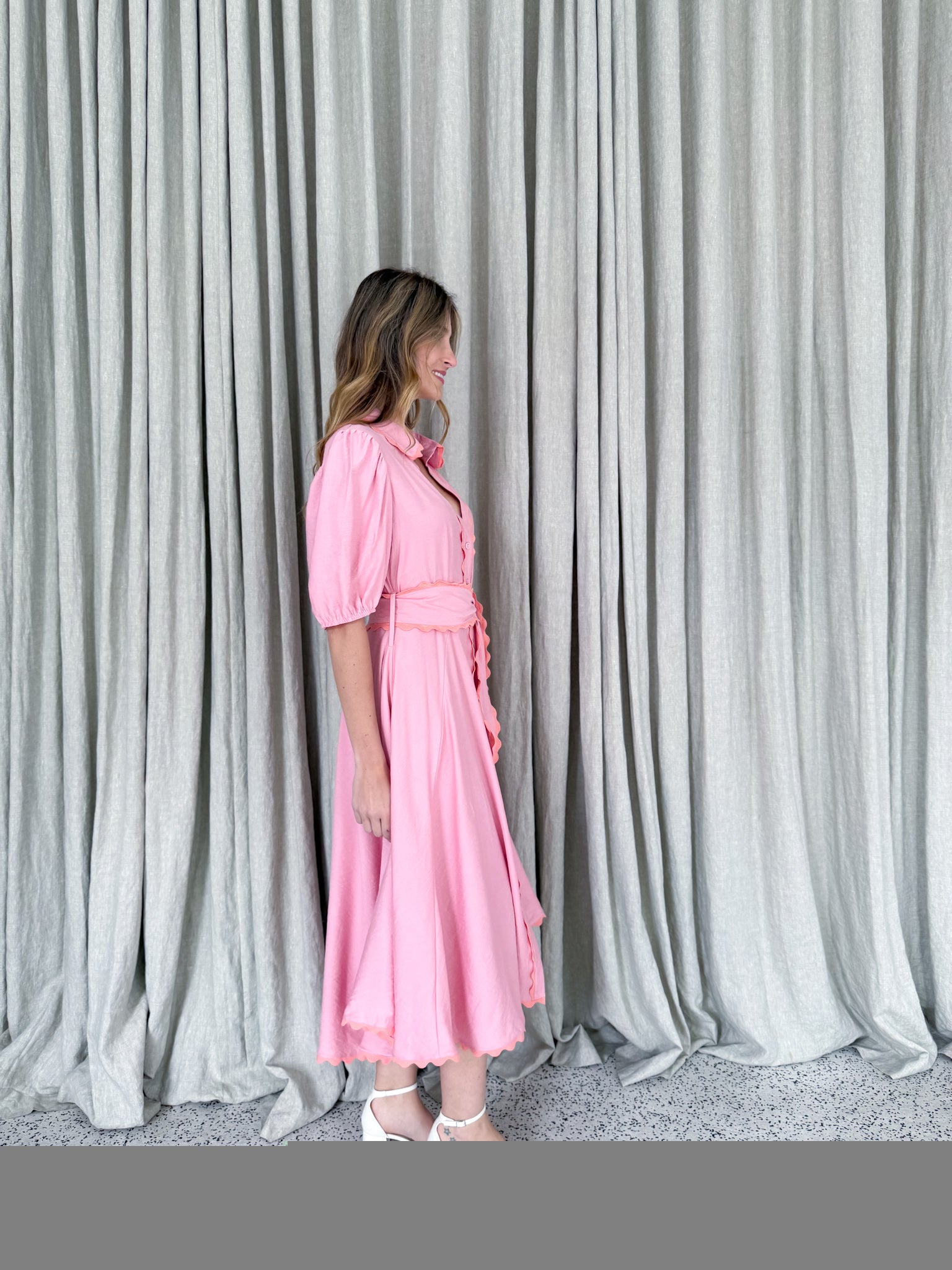 Meet Wrap Around Rosie — the prettiest easy-wear midi with a soft floaty skirt, waist tie and sweet ric-rac trimming. She moves beautifully, flatters every shape and feels like pure effortless femininity.