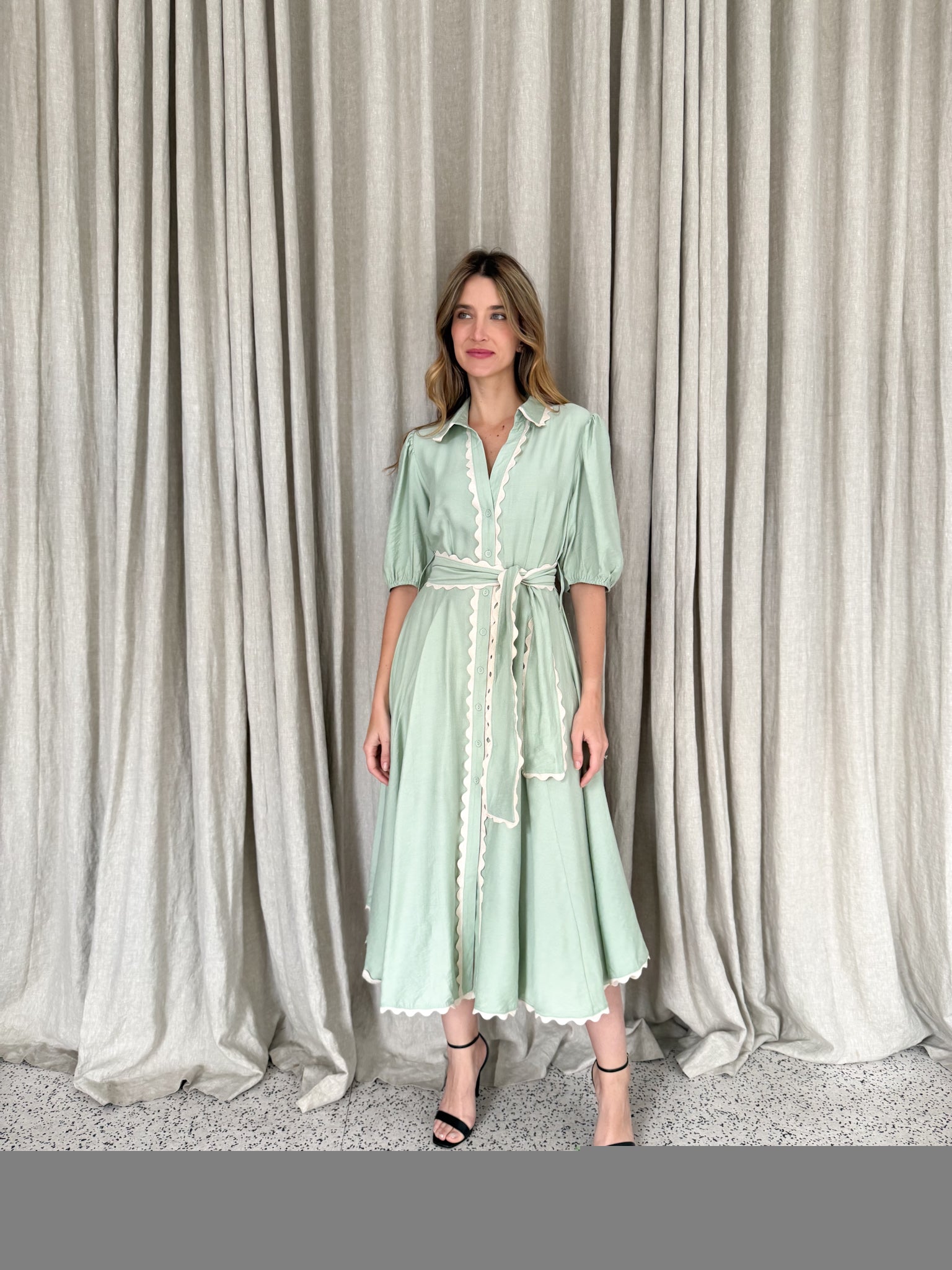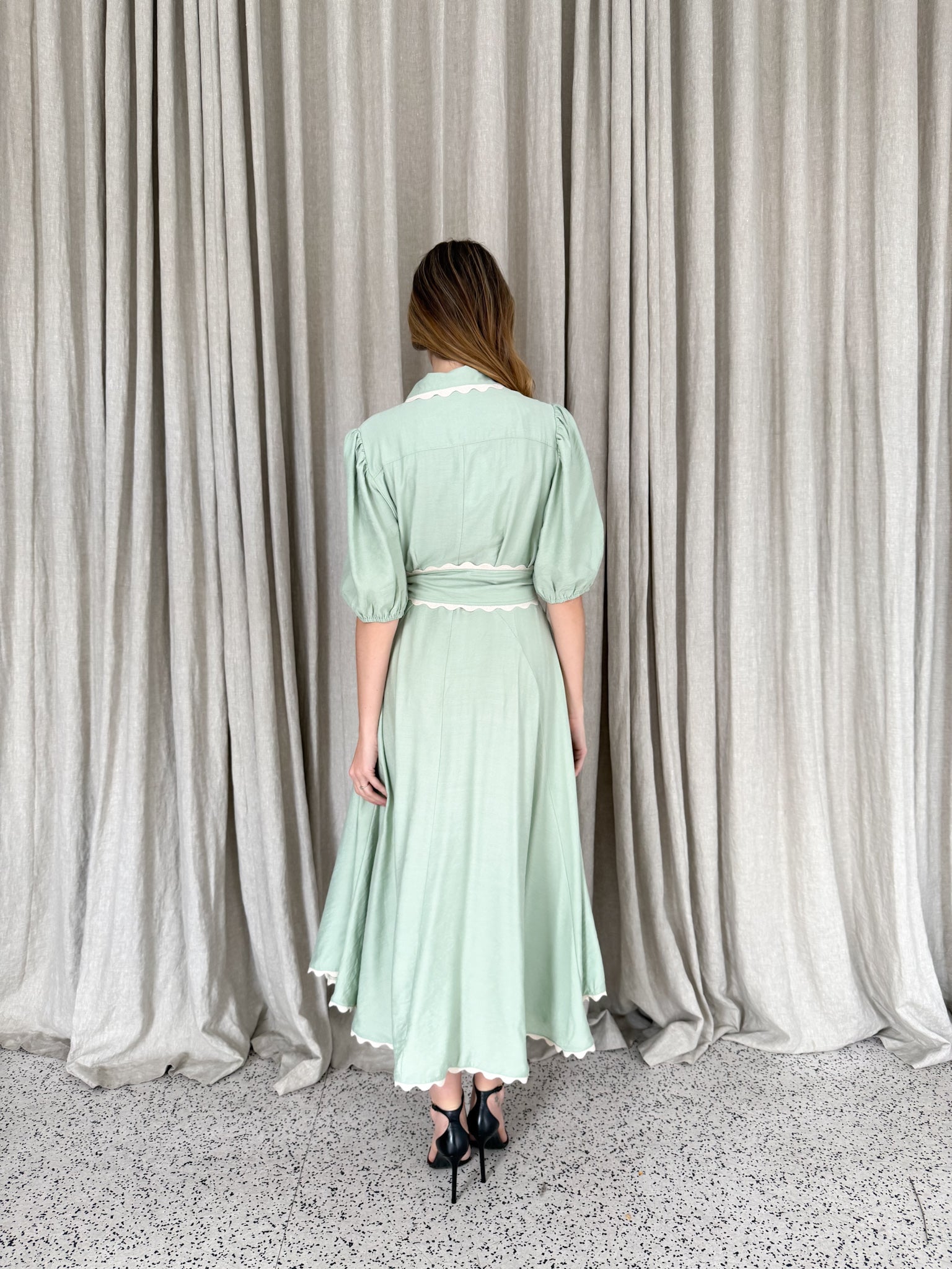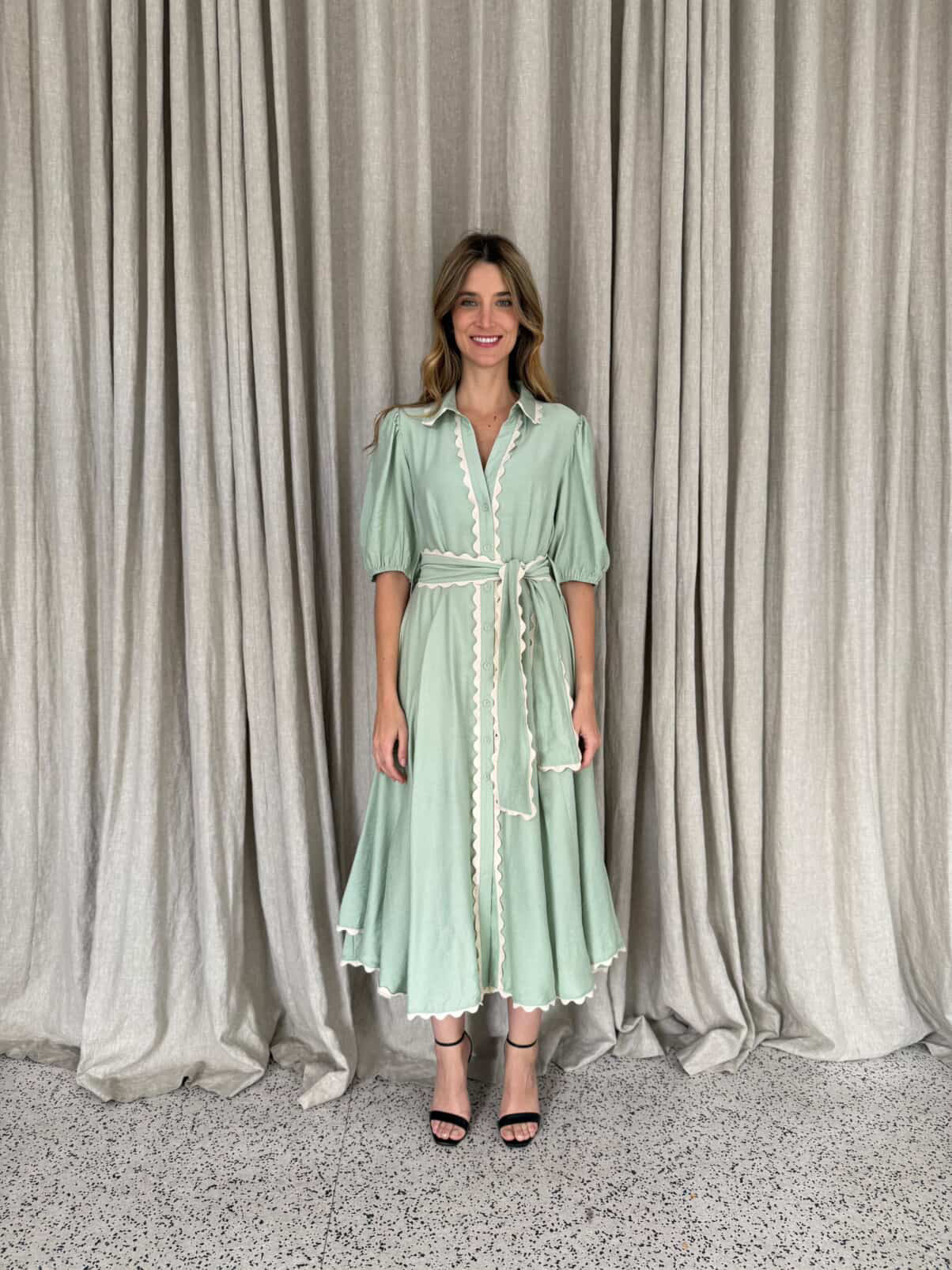 Meet Wrap Around Rosie — the prettiest easy-wear midi with a soft floaty skirt, waist tie and sweet ric-rac trimming. She moves beautifully, flatters every shape and feels like pure effortless femininity.