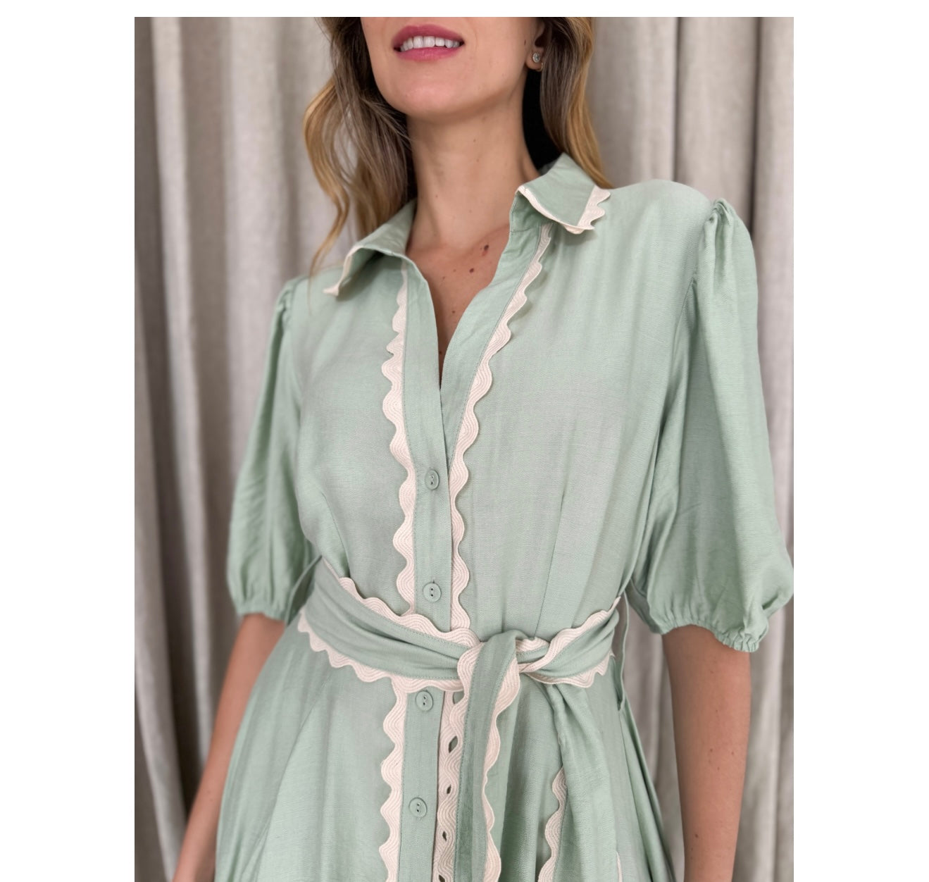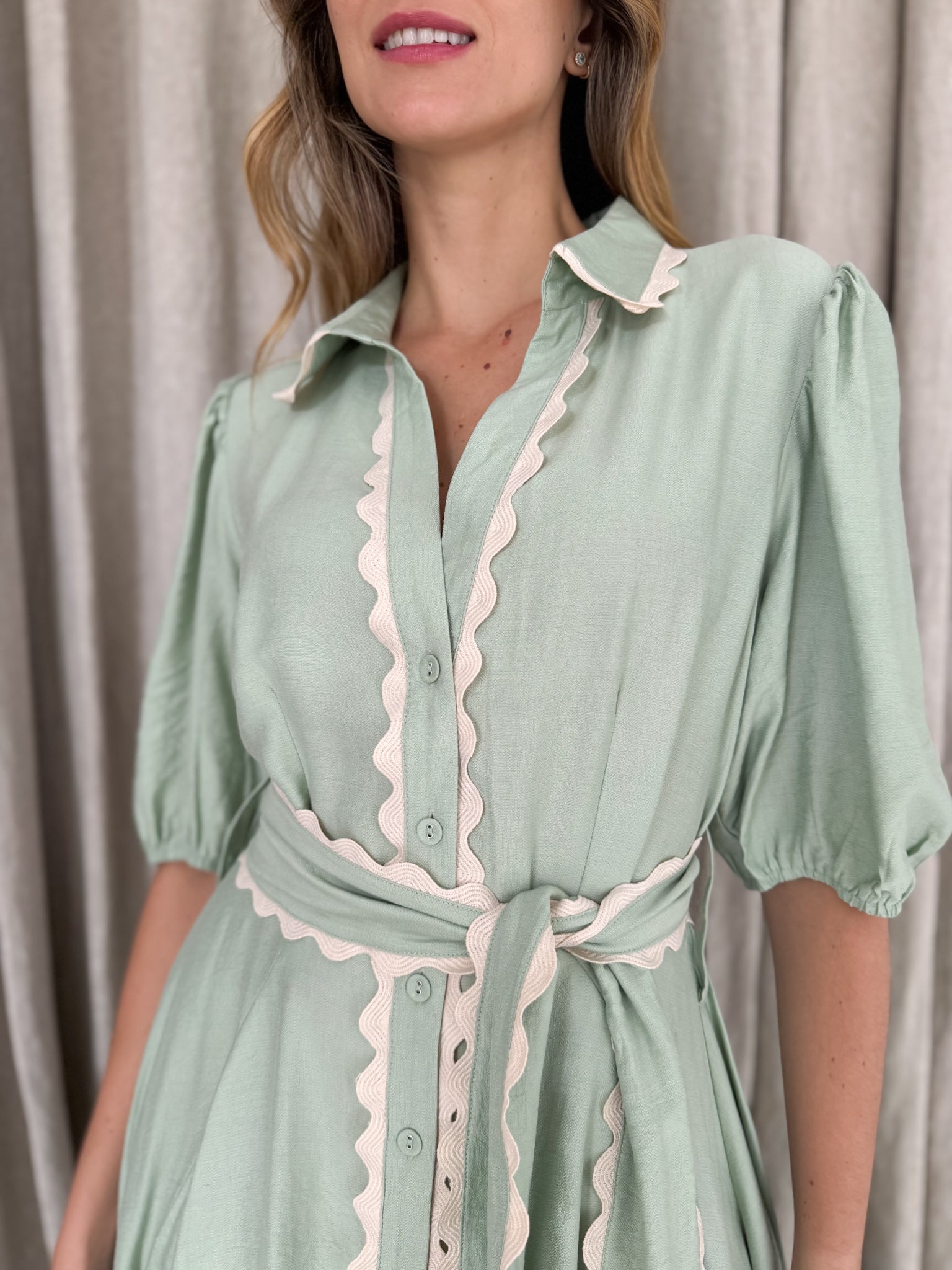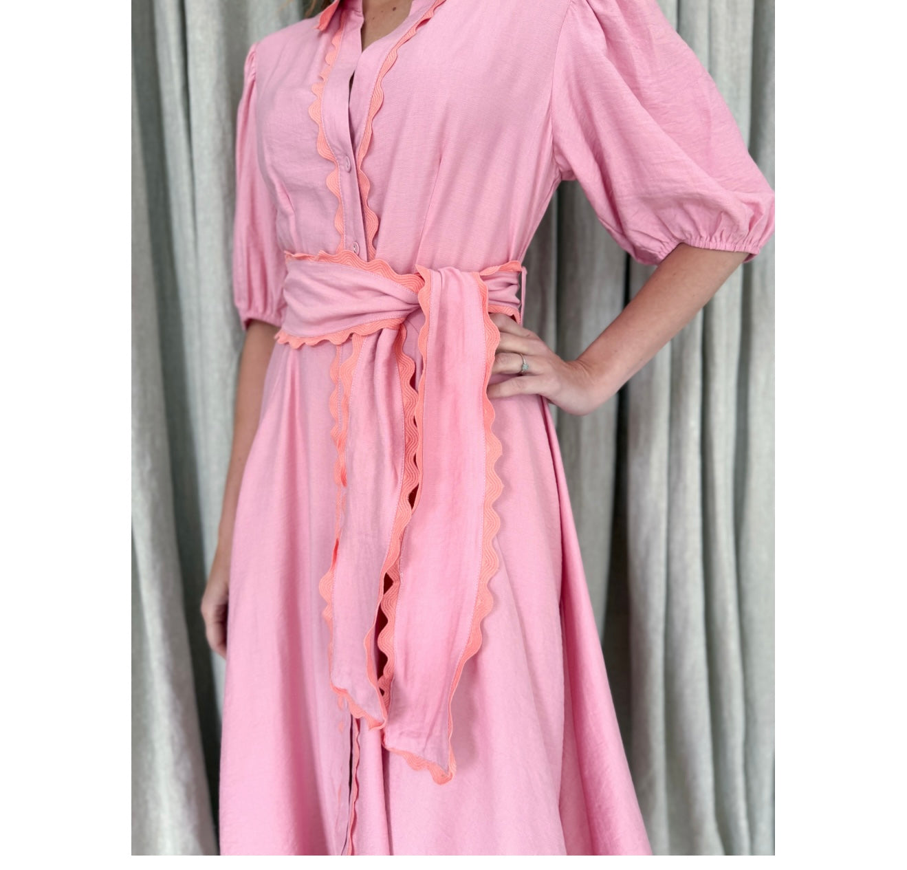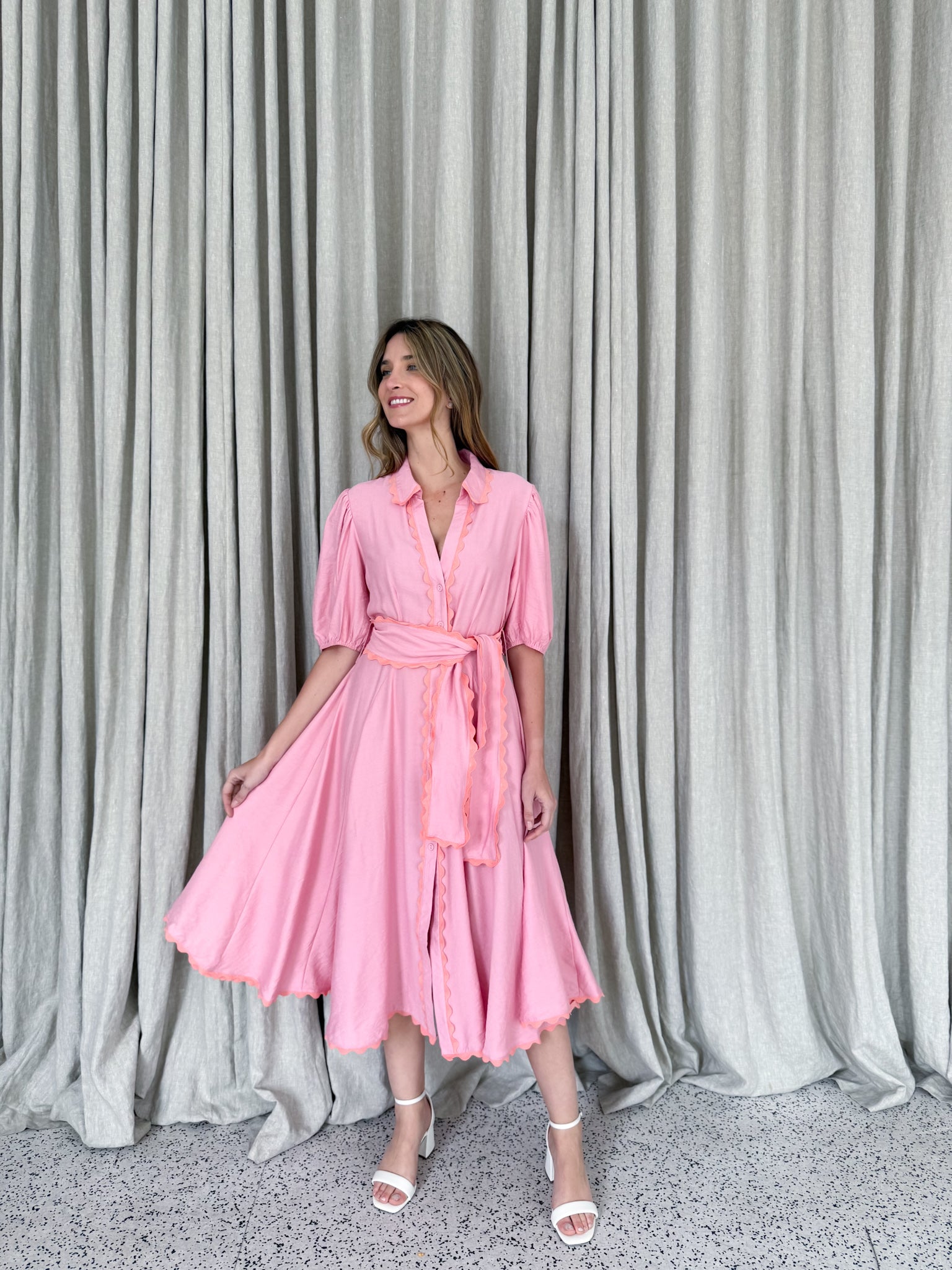 Meet Wrap Around Rosie — the prettiest easy-wear midi with a soft floaty skirt, waist tie and sweet ric-rac trimming. She moves beautifully, flatters every shape and feels like pure effortless femininity.